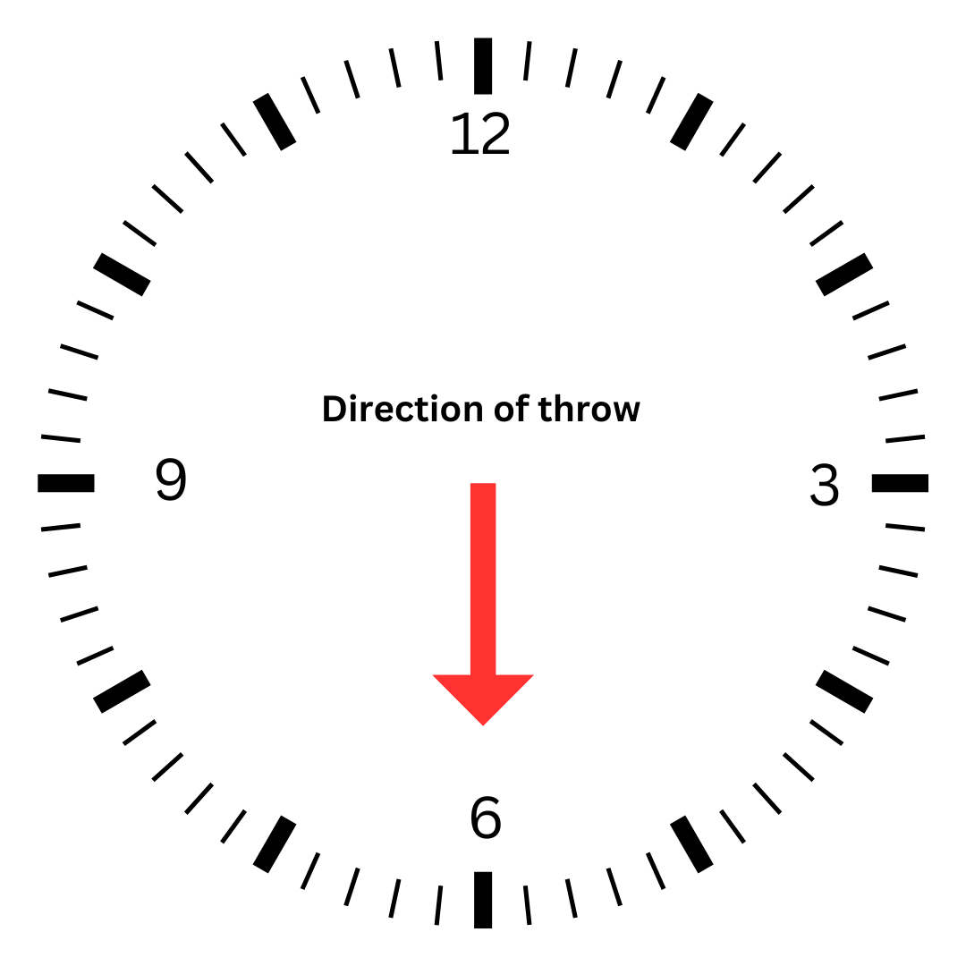 When standing in the throwing circle, it is useful to imagine you are looking down on the face of a large clock.