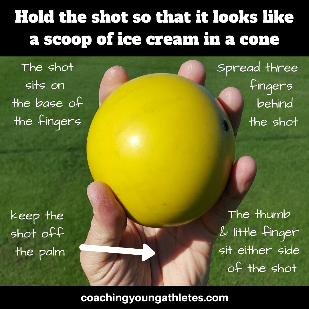 Ideally, a basic shot put grip that is suitable for kids should look something like this: