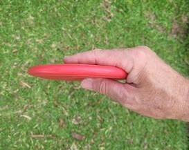 Using this grip, kids can first be taught to drop, then roll, then toss the discus underarm, always ensuring that the implement rolls out forwards over the index finger.