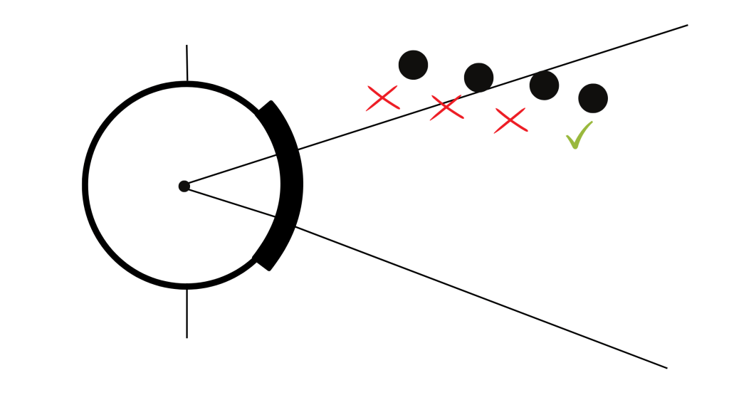 A shot that lands outside either sector line is a foul. A shot landing on the sector line is considered as being “out” and cannot be measured. This is different from many other sports where a ball landing on the line is considered as “in” (e.g. tennis).