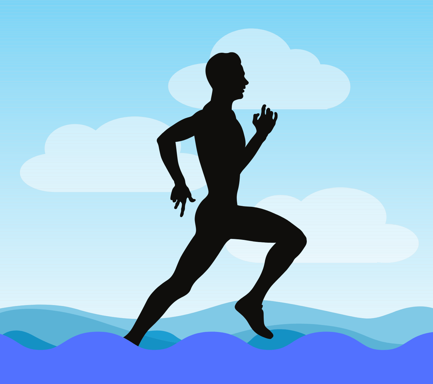 So, I want you to imagine that the track is flooded with ankle-deep water and you have to try to step over the water as you are running.